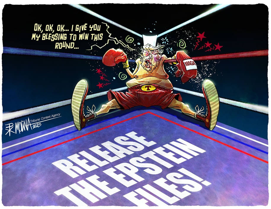Share Facebook Twitter LinkedIn Pinterest Email A cartoon by Pedro Molina. Related | Epstein files inch closer to release after House does its damn job blessing Cartoon give
