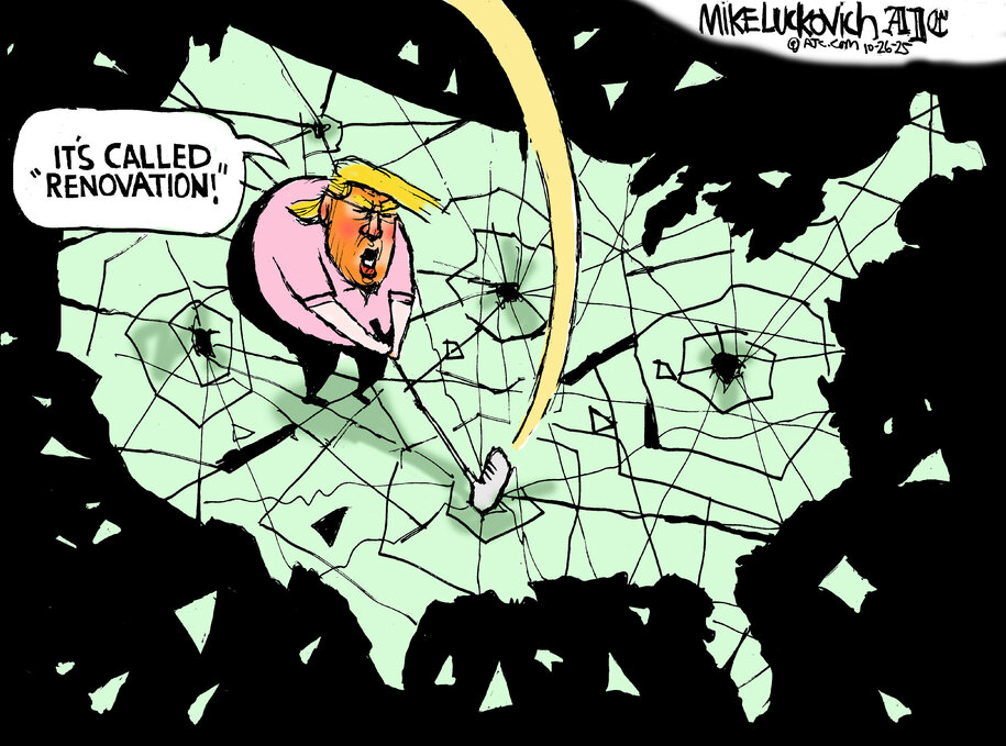 Share Facebook Twitter LinkedIn Pinterest Email A cartoon by Mike Luckovich. Related | Americans have 300 million reasons to hate Trump’s ballroom 039renovation039 called Cartoon it039s