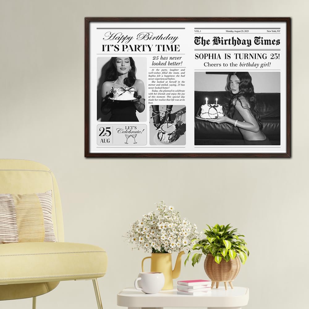 💖 BIRTHDAY NEWSPAPER PERSONALIZED/ROOMMATE FRAME/BIRTHDAY NEWSPAPER/VINTAGE NEWSPAPER WALL ART/CUSTOM PHOTO CANVAS PRINTS/PERFECT GIFTS FOR SOUL SISTER, FRIENDS, COWORKERS