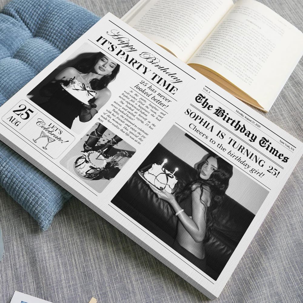 Be the first to review “Personalized Birthday Newspaper Trendy Vintage Poster, Birthday Magazine Wall Art, Upload Your Photo & Name, Gifts for Friends Soul Sister Bestie, Retro Canvas Hanging Wall Decor (STYLE-01)” Cancel reply