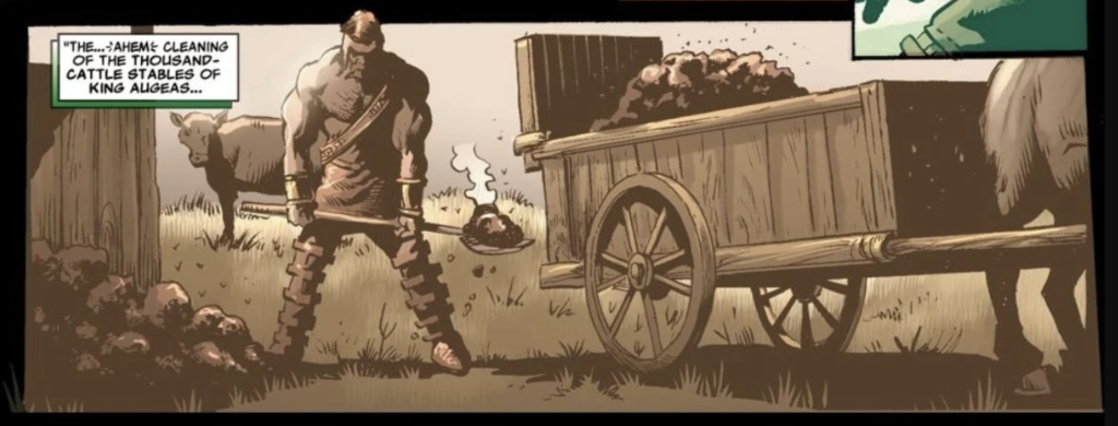 [T]he livestock were divinely healthy (immortal) and therefore produced an enormous quantity of dung. These stables had not been cleaned in over 30 years, and over 1,000 cattle lived there. However, Heracles succeeded by rerouting the rivers Alpheus and Peneus to wash out the filth.