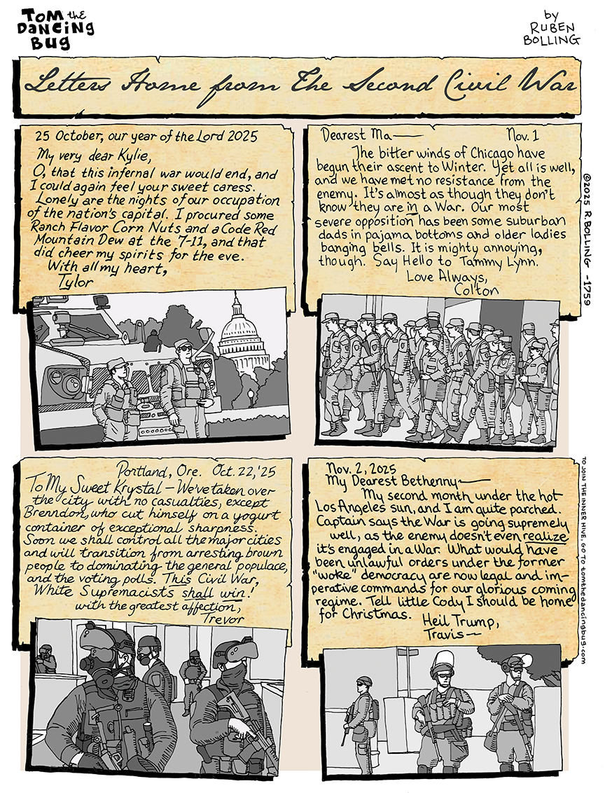 Sign up for the free weekly Tom the Dancing Bug Review! Not nearly as good as joining the Inner Hive, but it’s free!
